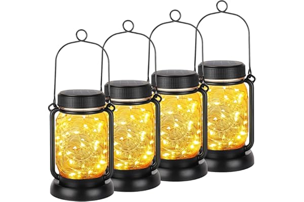 4 Pack Solar Hanging Mason Jar Lights with Stakes