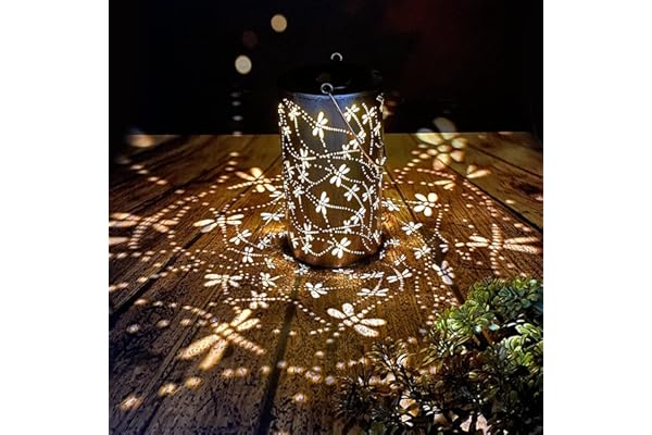 Solar Lanterns Outdoor Hanging Lantern Lights, Dragonfly Hollowed-Out Metal Decor Lantern, Waterproof LED Decorative Garden Light