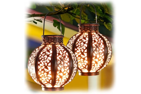 MAGGIFT 2 Pack Hanging Solar Lanterns Retro Solar Lights with Handle