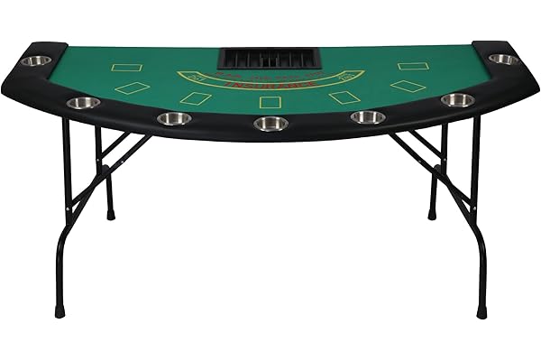 7 Player Blackjack Table with Folding Legs 71'' Casino Game Table Removable Metal Cup Holder Green Felt