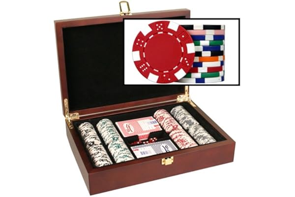 DA VINCI Mahogany Wood Poker Chip Set with Dice Striped 11.5 Gram Chips