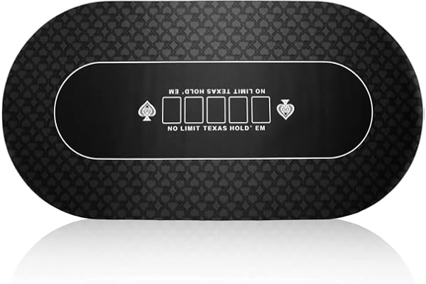 Texas Hold'em Portable Poker Table Tops, Professional and Folding Rubber Foam Oval Black Layout with Carrying Bag & Poker Card for Poker Games, Casino, Blackjack, Theme Party