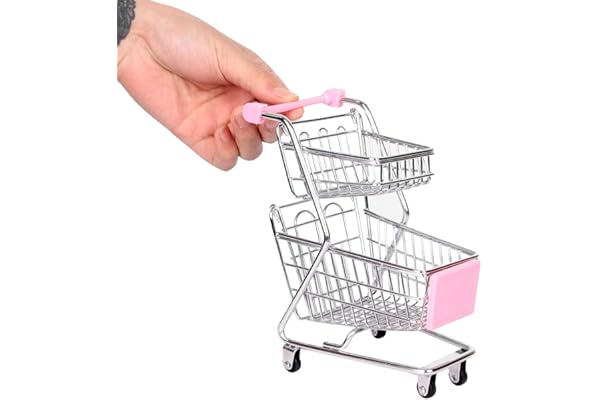 Mini Supermarket Shopping Cart, Metal Double Layer Trolley Toy, Desktop Storage Shopping Cart Model Decoration (Pink Toy Shopping cart)
